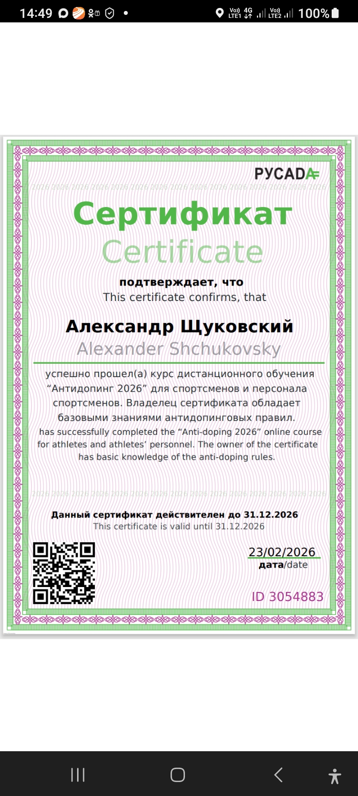 Звание/разряд:
